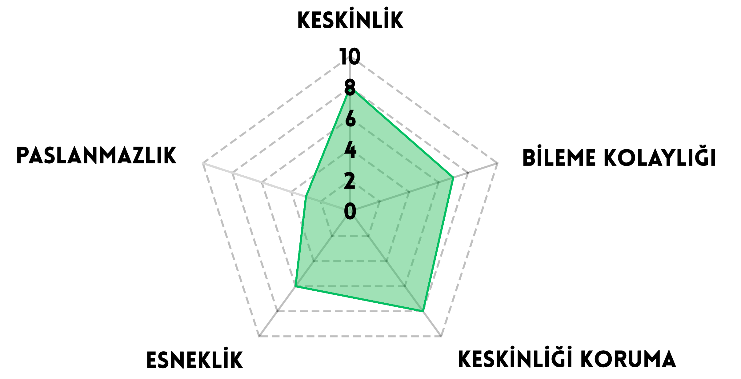 Japon çeliği, keskinlik ve performans arayanlar için idealdir.
