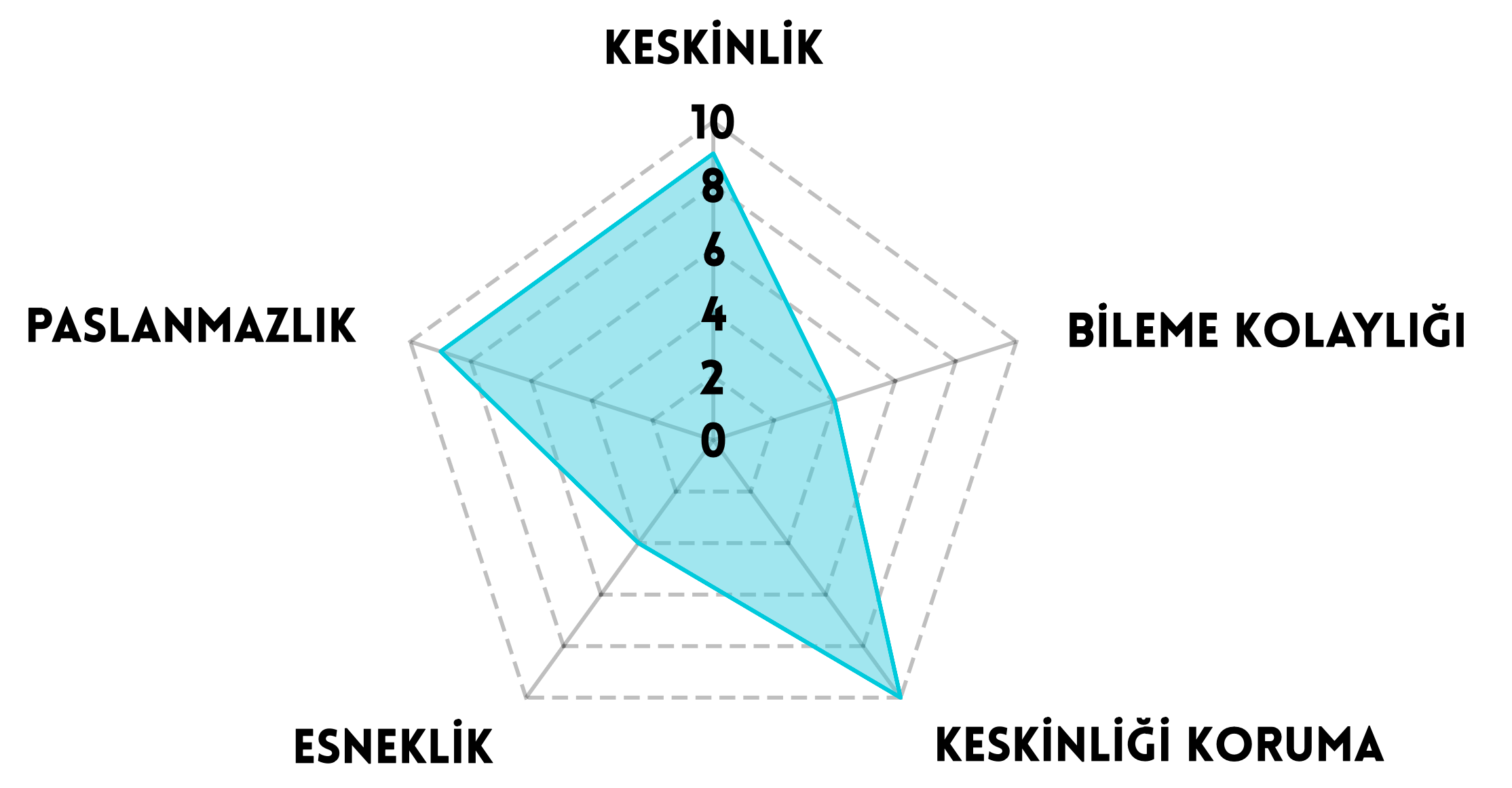 Japon çeliği, keskinlik ve performans arayanlar için idealdir.